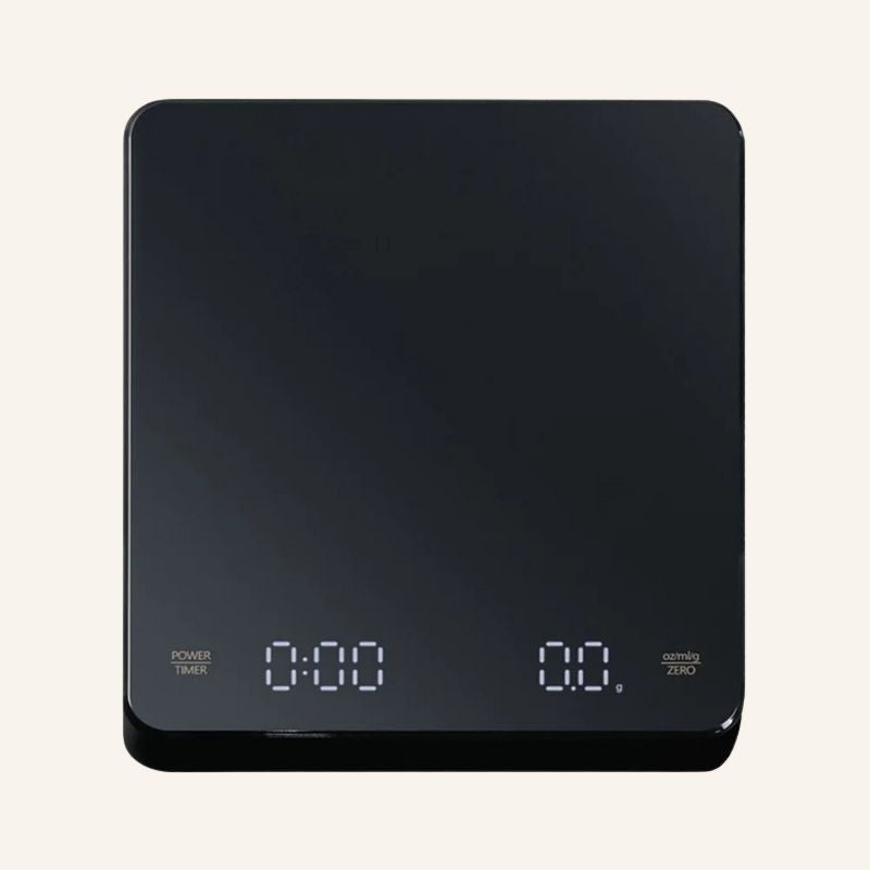 Aurora marca o início do ritual. Uma balança que une precisão e tempo, guiando o preparo com suavidade e intenção desde o primeiro gesto até a última gota.